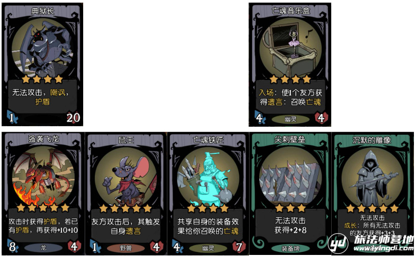 3.整个队伍只有“强袭飞龙”可以行动,如果再搭配疯狂类装备给“强袭飞龙”,搭配护盾类装备给“亡魂铁匠”,那么这个阵容就可以变成,依靠“强袭飞龙”和“鼠王”召唤出无法攻击的护盾“亡魂”挡在前排,只要敌方无法突破前排三个不动“亡魂”的防线,“强袭飞龙”只要一直攻击,就能配合“鼠王”源源不断的召唤“亡魂大军”。