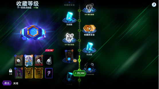 到500级以后收藏树会解锁焦点宝箱系统,该系统便是获取4、5池卡的主要途径。收藏树每120级能获取一个焦点钥匙,焦点箱子一周更新一次,一轮为4箱,由一张新卡,两张特定4、5池卡及一张随机4、5池卡组成(如随机到已有的卡牌,会转化为1000收藏家代币),因此你需要提前规划好选择开哪一期的焦点宝箱,是积攒钥匙还是4发必出。