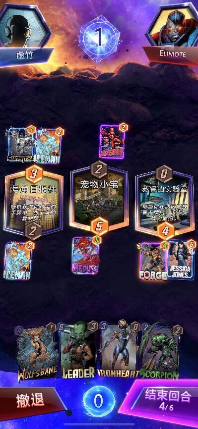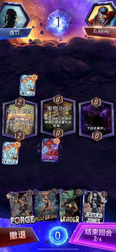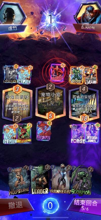 这里我选择把蜘蛛女打在1路的原因是手里有大头,保持三路领先优势的话,最后一回合打出大头可以确保胜利,因此我这里还点了snap。