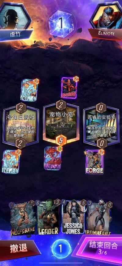 第四回合把杰西卡琼斯打在三路,吃三路双倍战力的效果。