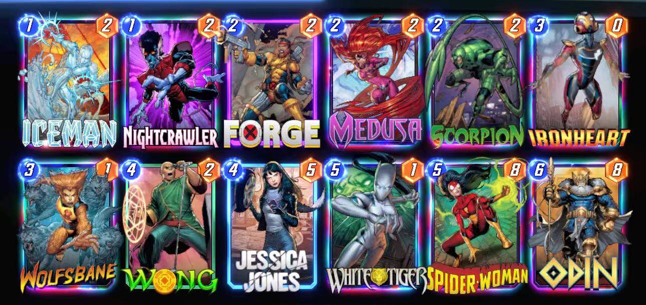 eyJDYXJkcyI6W3siQ2FyZERlZklkIjoiV29uZyJ9LHsiQ2FyZERlZklkIjoiSmVzc2ljYUpvbmVzIn0seyJDYXJkRGVmSWQiOiJJY2VtYW4ifSx7IkNhcmREZWZJZCI6Ik5pZ2h0Y3Jhd2xlciJ9LHsiQ2FyZERlZklkIjoiRm9yZ2UifSx7IkNhcmREZWZJZCI6Ik1lZHVzYSJ9LHsiQ2FyZERlZklkIjoiU2NvcnBpb24ifSx7IkNhcmREZWZJZCI6Iklyb25oZWFydCJ9LHsiQ2FyZERlZklkIjoiV29sZnNiYW5lIn0seyJDYXJkRGVmSWQiOiJTcGlkZXJXb21hbiJ9LHsiQ2FyZERlZklkIjoiV2hpdGVUaWdlciJ9LHsiQ2FyZERlZklkIjoiT2RpbiJ9XX0=