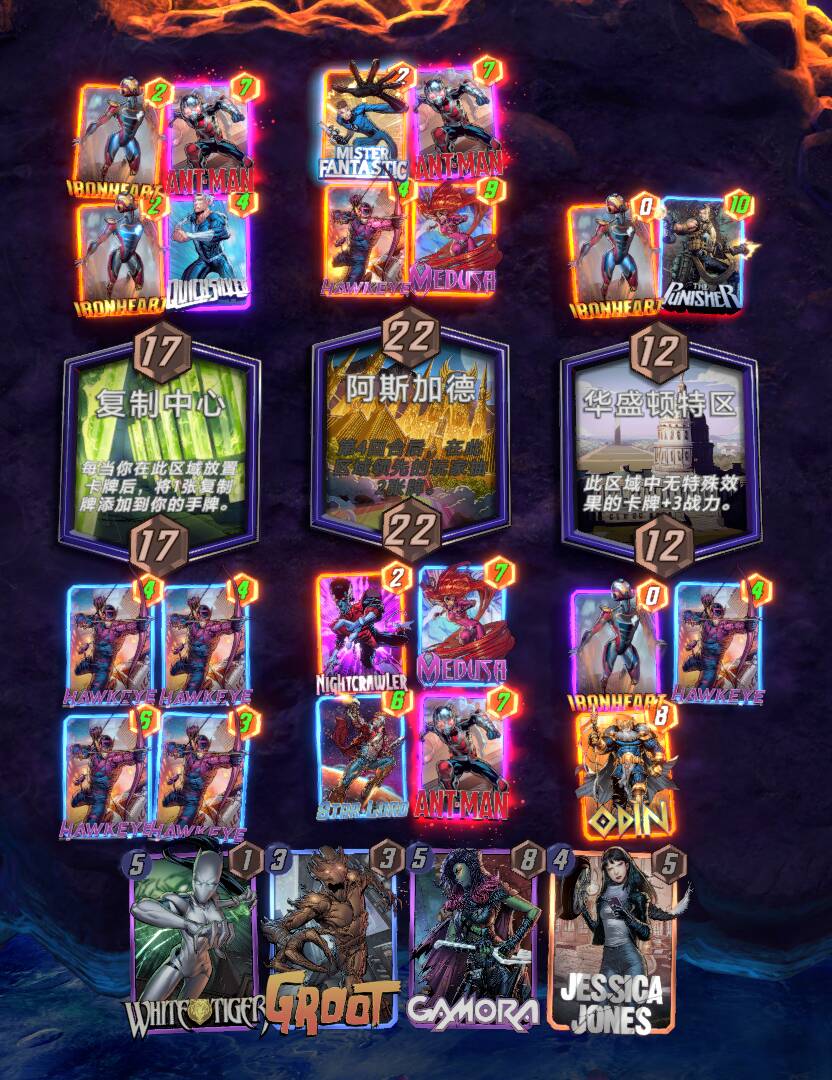 - 奥丁在《漫威终极逆转》里可以说是揭示流卡组一锤定音般的存在,我感觉像是借鉴了漫画中复活技能的特性。