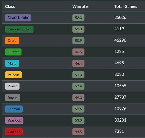 谈到强度,诚然,从这次比赛能看出来,就是谁无限贼玩的好谁就能当冠军,但是从天梯的数据上看,前1000名的盗贼胜率都没超过50%,说明大家确实也不太会玩,玩家之间有差距这很正常,就好像异灵术可以用快乐术三服登顶,而戴佳伟玩快乐术连传说都上不去。