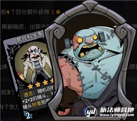 缝合怪,技能是:选择一个友方,下次战斗开始时,其会附着给同列的另一个友方。缝合怪这位英雄在月圆之夜的镜中对决里,算是脑洞创新的天花板了,只要玩家的想象力有多大,创造出来的阵容强度就有多厉害。