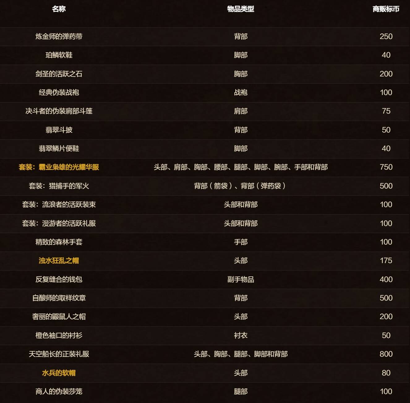 以下是九月提供的返场物品: