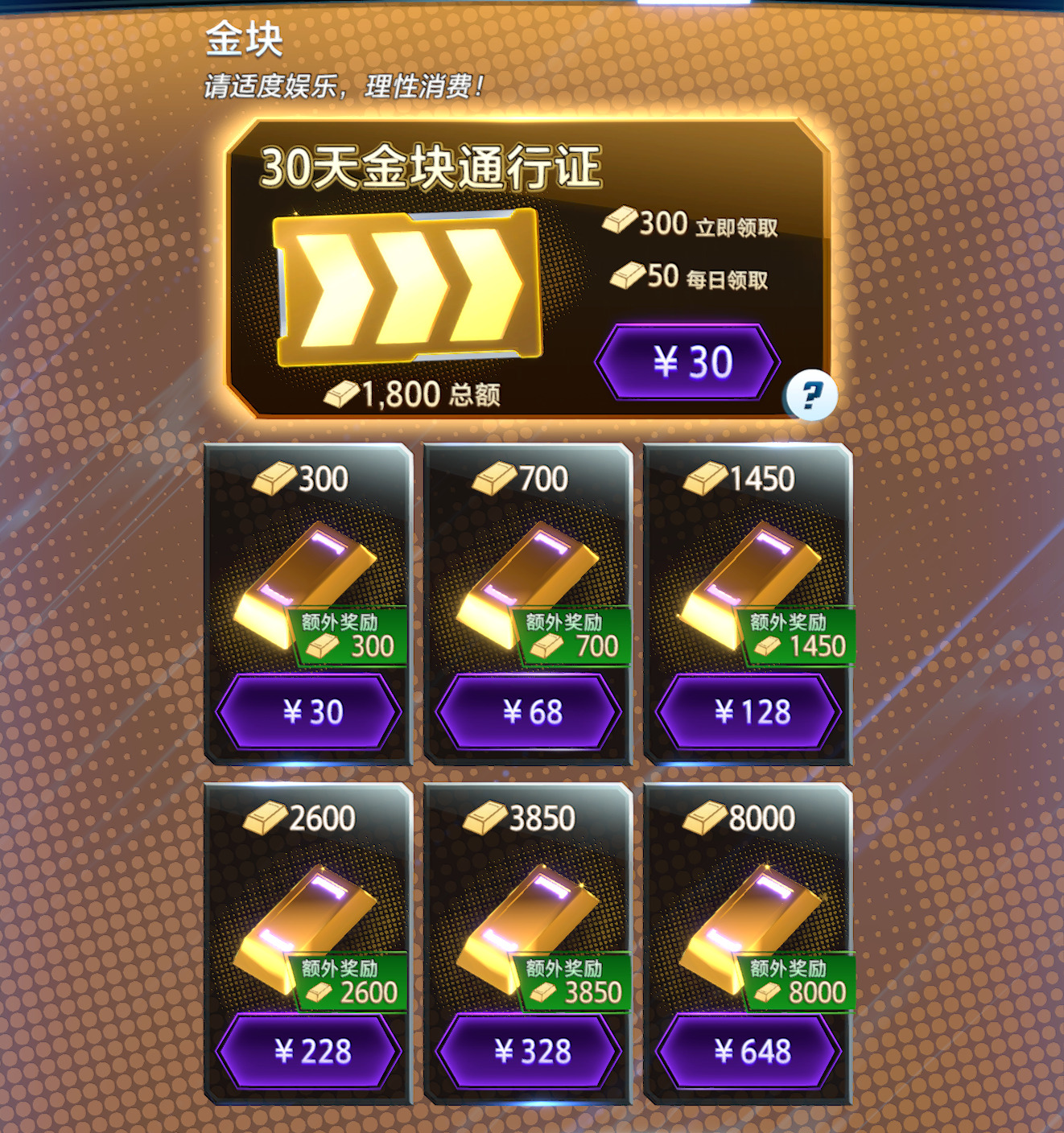 通行证>金块通行证>性价比礼包>买任务>直接买尘
