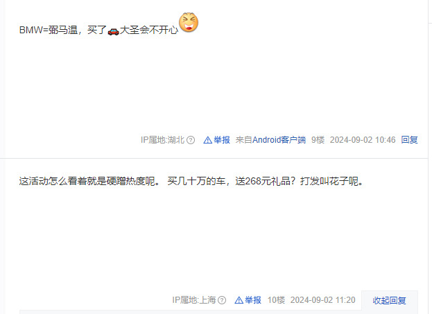 ·日前有玩家晒贴,自己当地的宝马汽车4S店联动《黑神话:悟空》蹭热度,购买M系列送游戏,引发热议,宝马M系列是尊贵的宝马品牌的运动高端系列,价格不菲,玩家吐槽太抠门,送个高价《黑神话》限定版还差不多。