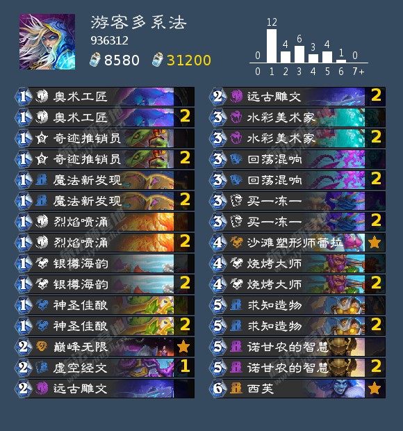 总的来说这个环境玩多系法需要熟悉对手的节奏+确定自己的打法。举个例子,打德鲁伊,对面3费空场攀上新高,或者死骑3费打自然天性,这个时候你4费,那就可以考虑裸游客,对面大概率是解不掉的,或者打德鲁伊可以3费跳游客卡对面跳费节奏,打圣骑萨满之类的应该憋4费游客+硬币+减费的卡之类的刷一波(提前用远古雕文和巅峰无限找0费法术)。