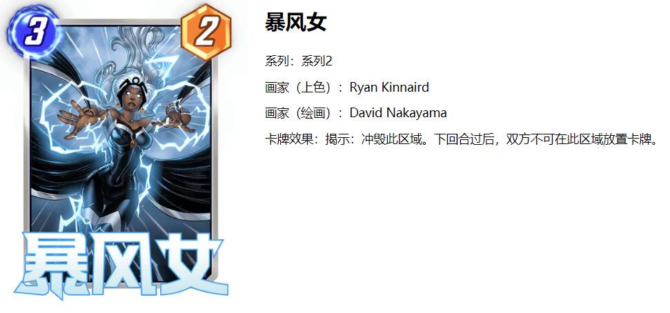 遇到暴风女锁区的卡组,带移动效果的卡牌是可以移动进去的,比如夜行者,比如幻视,当然对面如果玩锁区,大概率也会带神奇先生,幻视,克劳等可以修正锁定区域战力的卡牌。
