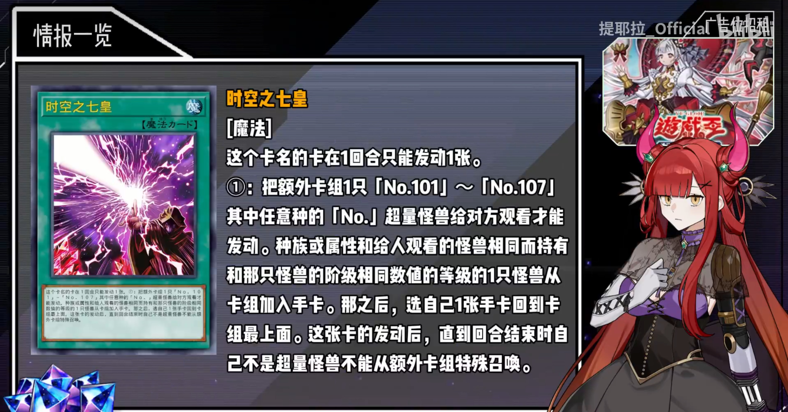 顺带一提时空之七皇还有不占通召一卡R4的妙用,不过得配合携带几张水产,比如这套上位的鲨鱼雷热涡炉,额外携带了编号103用于检索浮上的大鳄蛟,因为发动了时空之七皇所以大鳄蛟可以手卡特召,特召落地之后从卡组检索龙兽鲨,龙兽鲨加手特召,这样就做到了不占通召伪一卡R4,不愧是鲨鱼大人的魔法combo。