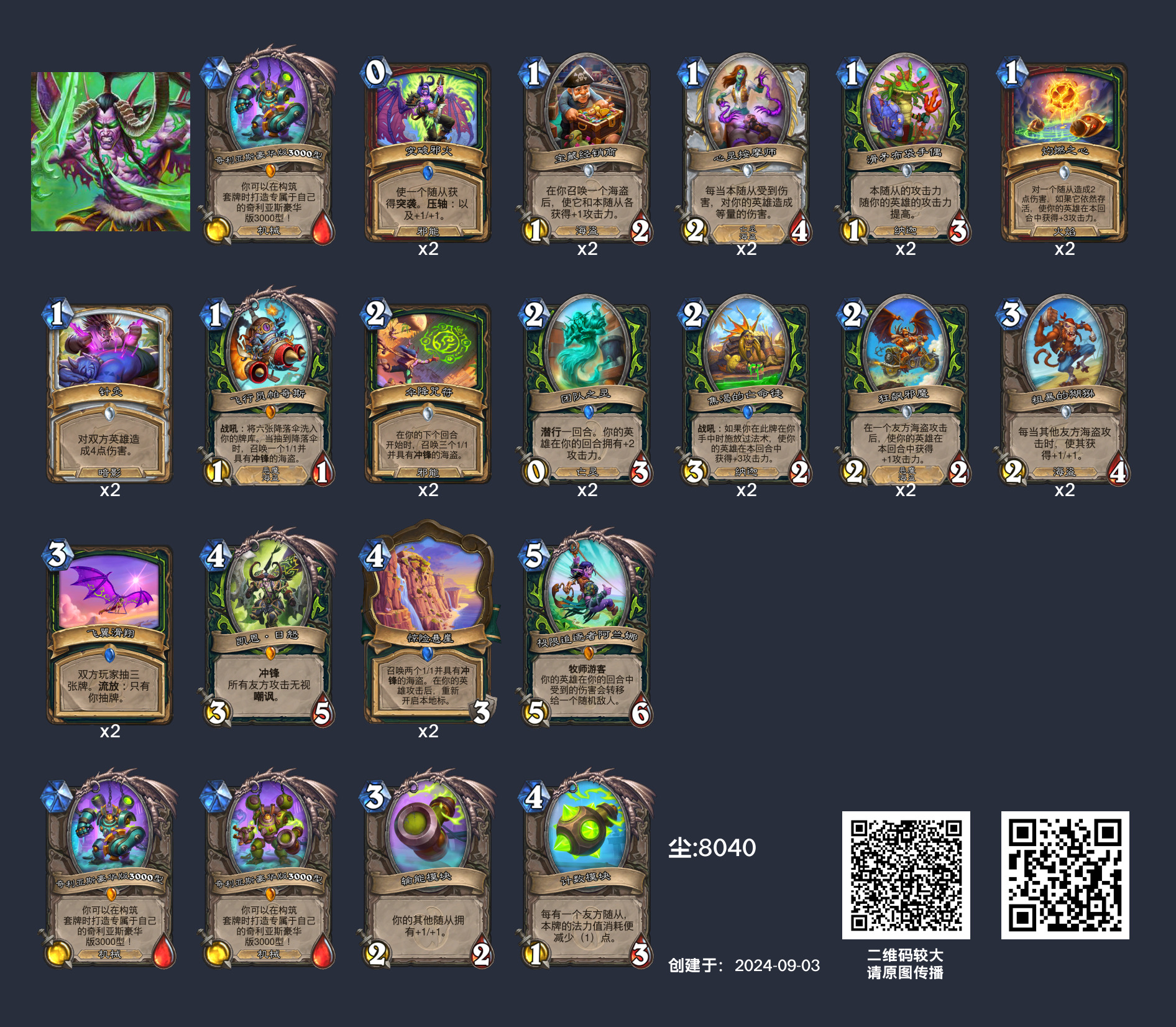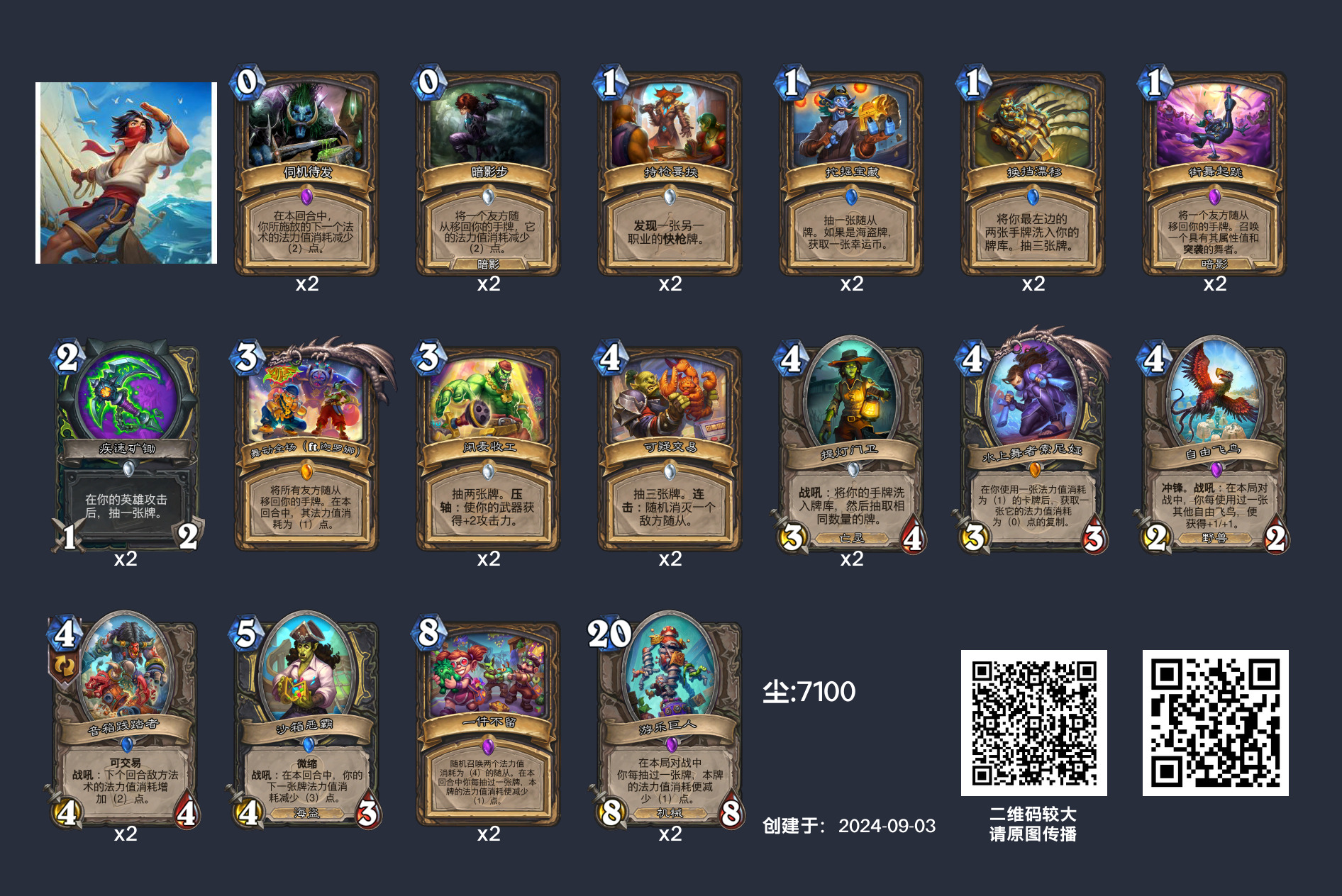 在构筑时,我建议大家如本周收录的两套卡组一样,在环境上稍有侧重。携带飞翼滑翔的卡组理应携带更多直伤、携带疾速矿锄的卡组则可以加入炽热木炭这样的内战卡,以统一卡组思路。在过牌思路上选择“我全都要”,在环境针对上选择“全都不要”固然会使得卡组不具备明显的环境倾向性,但我不禁想问:如果不在环境两头选择一头针对,海盗瞎真的不会“上不去下不来”吗?