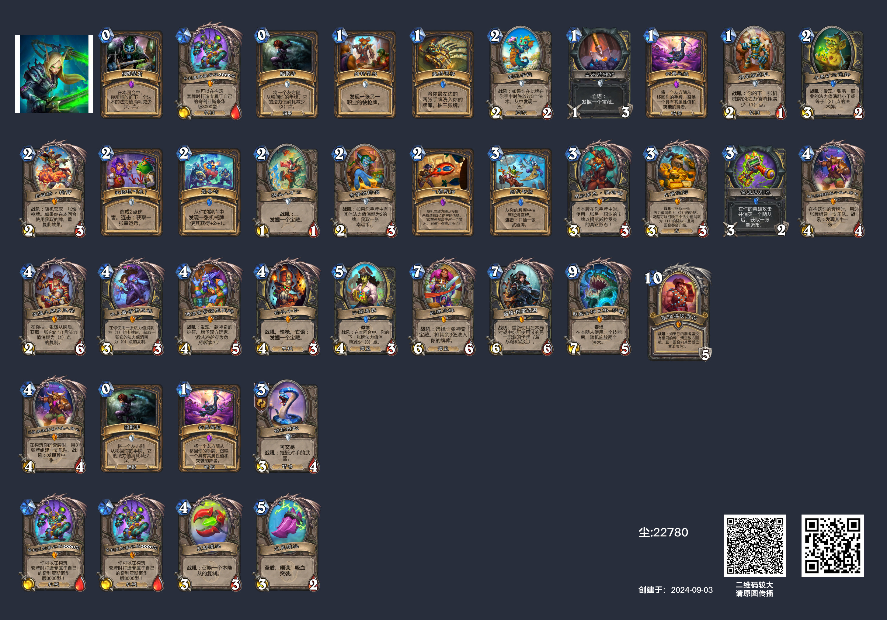 - 我会经常清理我在营地收藏的卡组,所以如果大家对文中的卡组感兴趣并想在营地里模拟摸牌或者是查看费用、种族、关键词分布,请复制卡组代码并依此创建一个新卡组。不要点击“跳转详情”。
