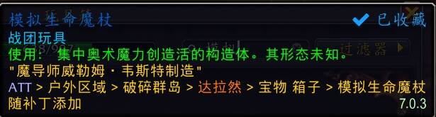 在位于【破碎群岛】的新达拉然,英雄之家旅店的【二楼】,玩家就可以在一个桌台上拾取玩具【模拟生命魔杖】。桌子在靠近一幅画的墙壁旁边,上去就能看到,很好找。