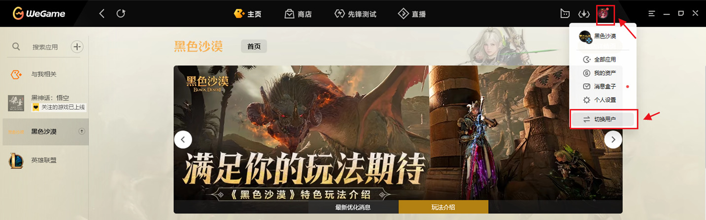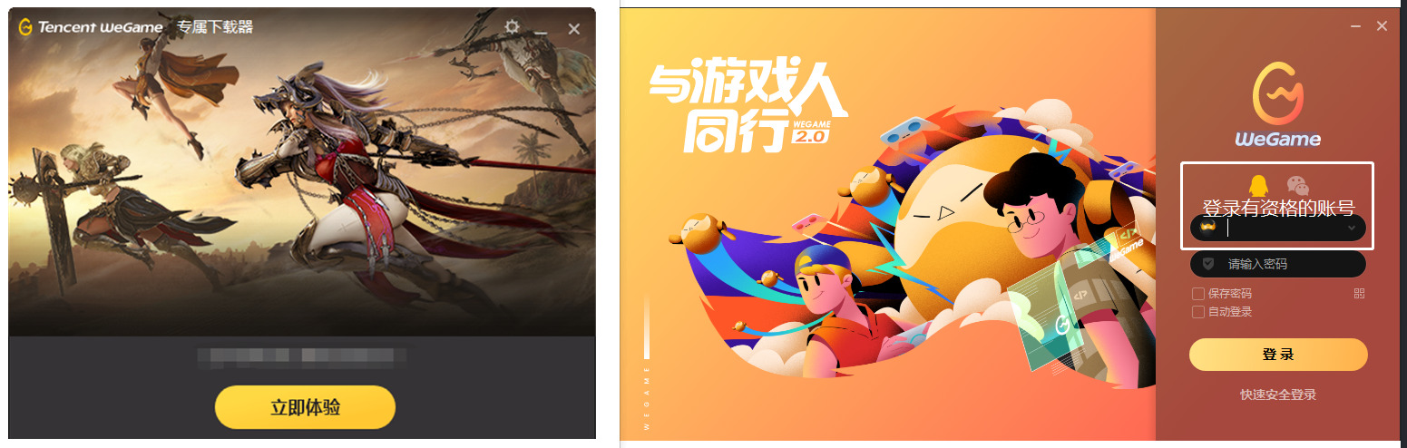 第四步:安装完成后,点击立即体验跳转至WeGame,需要登录已获得资格的账号;登录了其他没有资格的账号的冒险家,需要点击右上角的个人头像,切换账号至已获得资格的账号。