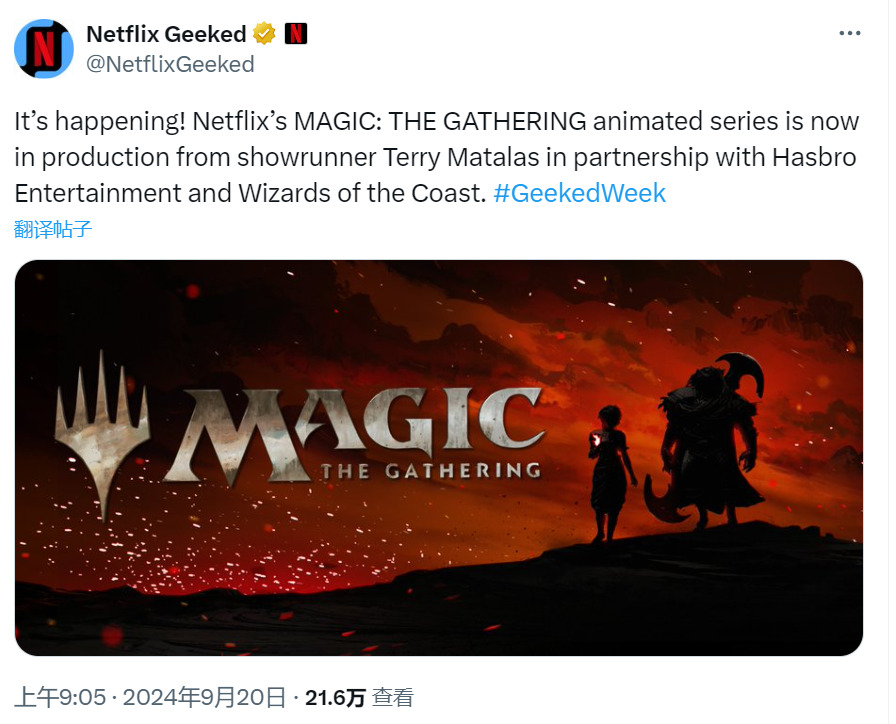 今天早先,Netflix Geeked宣布正在与孩之宝和威世智合作制作万智牌动画剧集,并给出了一张宣传图。