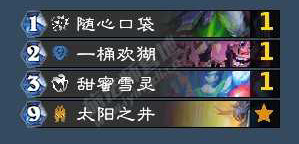 作为535科多班上位替代使用,更为灵活,有配合时上限极高,缺点是 不稳定,下限低 。大多拿过牌以及对阵快攻时拿奶12,此外打剑宗任务术可拿精控、打6偷鸡 ,打心火牧甚至可以捏手里等对面buff再找精控反杀 。减费很少有用,但是少数情况可以拿来配合业务支猿,有奇效。
