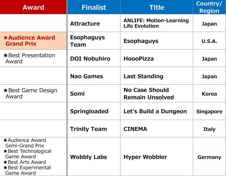 “POCKY奖”是官方独立游戏大使Pocky(一名内容创作者)从“精选80部独立游戏”中选出的。今年的三冠王分别是NEKOUP的《RAP OJISAN》、Optillusion Games的《While Waiting》、Explosive DisposalTeam的《Pia》。三部获奖作品的实况解说视频将在PocKY的YouTube频道上发布。