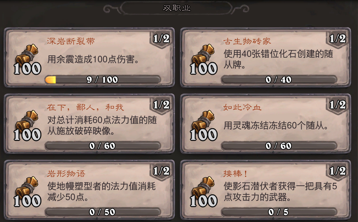 炉石传说-成就-游戏-荒芜之地-成就列表(目前还可以获得额外站令经验)