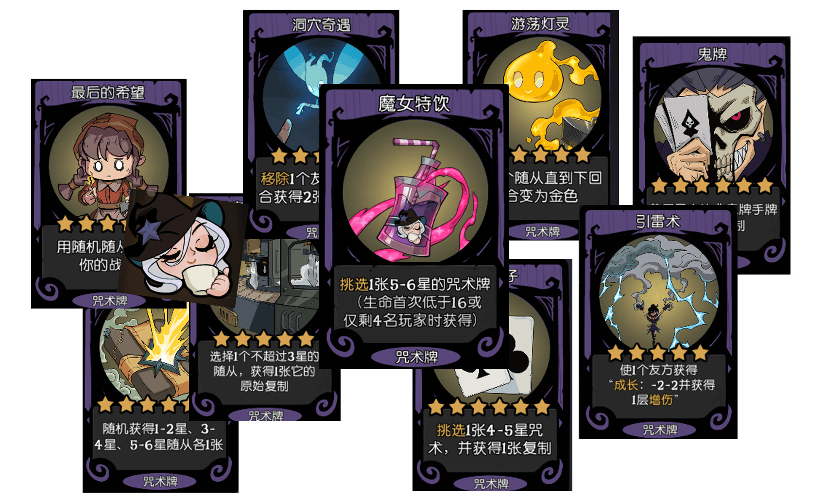 在S5当中,当玩家的生命值低于15时将会获得一张魔女特饮,效果是挑选一张5-6星咒术。也就是俗称的喝茶,是一种对煤笔的补偿机制,改善玩家的游戏体验。而由此也诞生出来一种全新的打法思路,那就是去卖血喝茶然后获得高本咒术,再用获得的高本咒术去滚雪球,把劣势转化为优势。