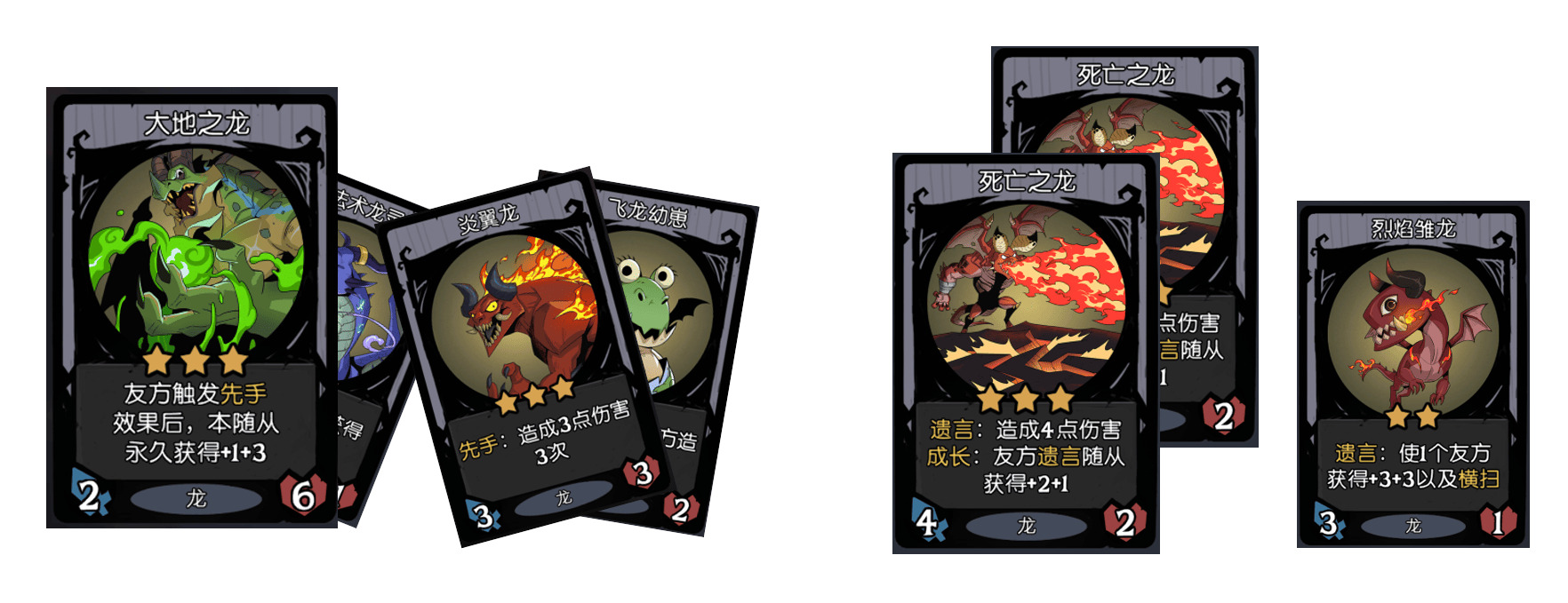 地龙这个版本做为压力怪还是非常强势的,多找一些带先手的随从和装备,每回合成长加的属性足够让我们撑到后期。而另一条死亡之龙的路子也可以尝试走走,如果我们能开到两张死亡龙,那我们就真的是压力怪本怪了,尽管后期可能会比较乏力,但是压力效果是有目共睹的。