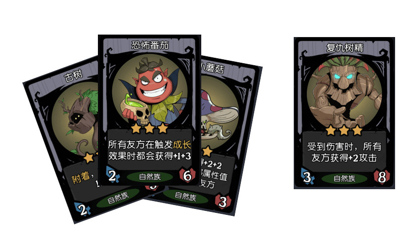 以番茄的成长流为主,番茄提供了每回合的稳定增长,在后续也能提供可观的战力。复仇树精单卡强度高,一张卡配合一地杂毛再不济也能和对手打成平局。