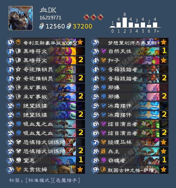 借用卡组选择DK,就是0尘。不需要无头骑士,对萌新友好。
