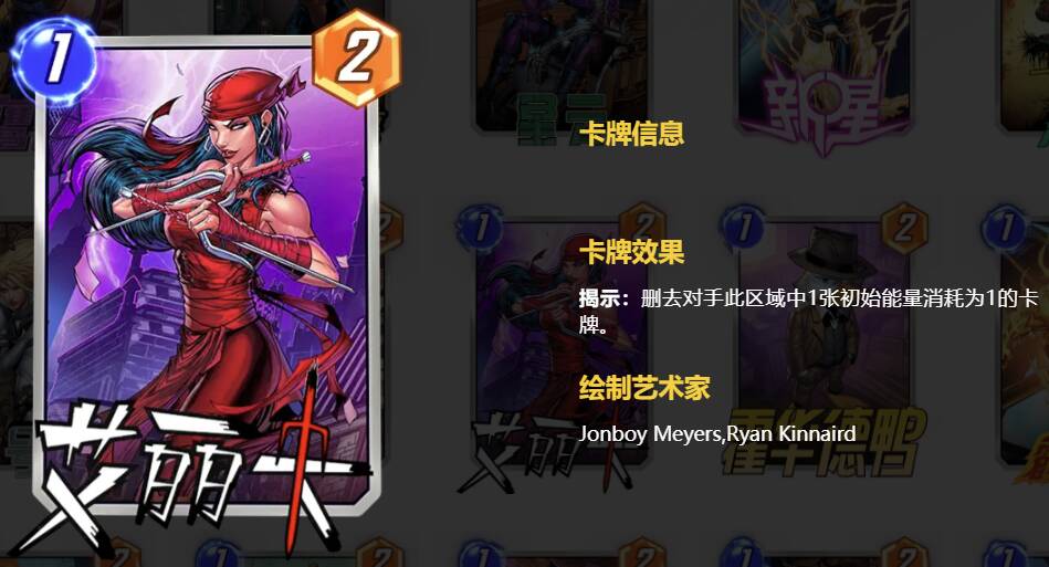艾丽卡通常用于反制星云、太阳黑子、蚁人、迷雾骑士等卡牌。