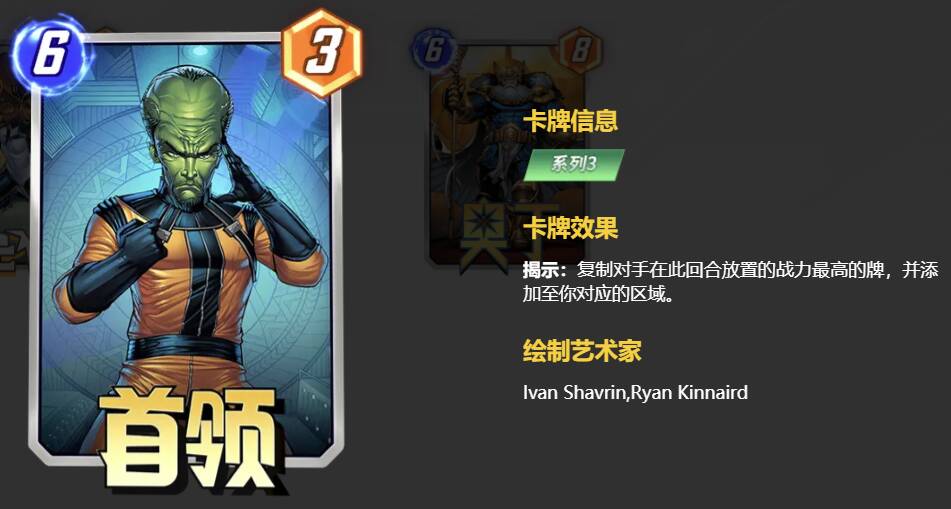 由于前4回合在两路领先,而最后一回合只能下一张卡牌,首领可以复制对手的一张卡牌,并为你增加3点战力。同样奥创能够同时影响三路,而对手通常只能下一张高战力卡牌,很难扭转局势。