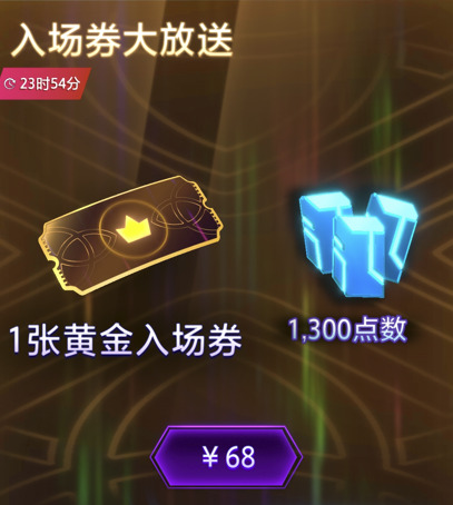另一个礼包入场券大放送,看起来很贵,但是不算双倍,68元只能买700金块,可以兑换875蓝点。所以比起直接购买金块兑换蓝点,这个礼包居然是值的?如果需要买蓝点快速爬树的玩家可以考虑。