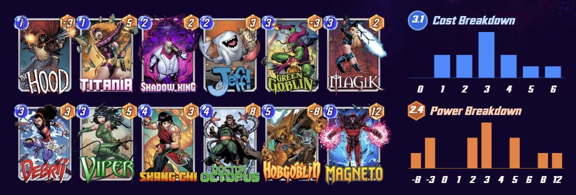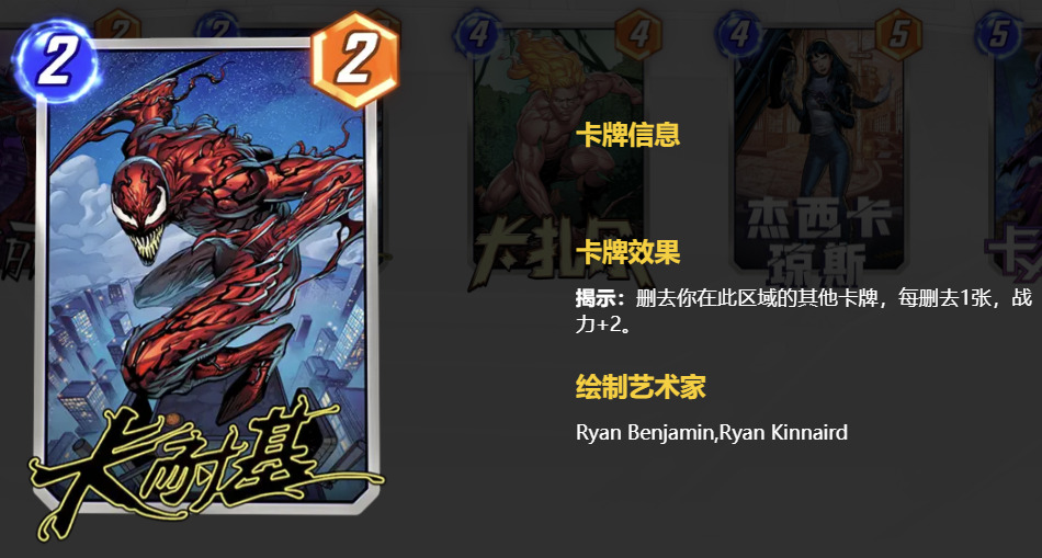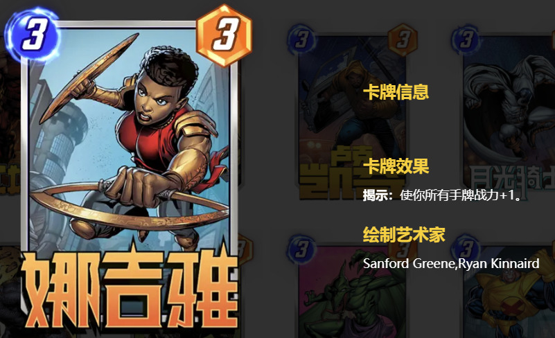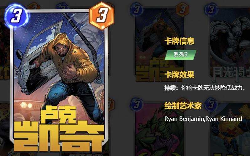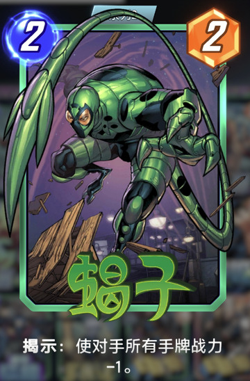 为了避免蝎子减少攻击力,可以加入卢克·凯奇,这样你的卡牌就不会被降低战力,同时也能克制至高卡组中的其他减攻牌。控制卡组如果不想空区域直接打出,也可以选择加入娜吉雅来弥补被减去的战力。