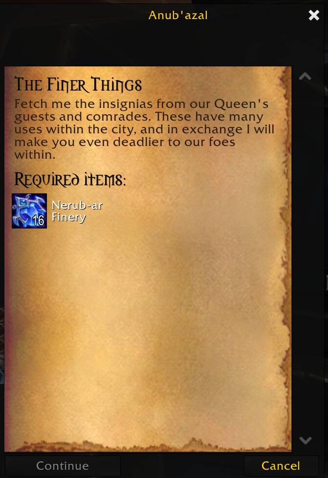 在王宫入口,玩家将会接到任务,任务要求玩家收集16个【尼鲁巴尔华服】,任务完成后,即可在团本内获得百分之3的团本DPS增强BUFF。