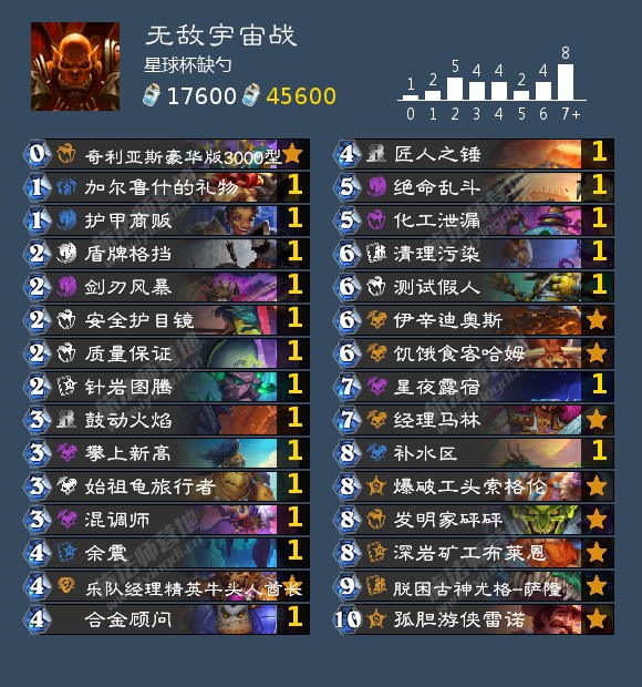 2.大法师法,73开,咱们属于强势的,因为咱们墙多屁股大,4个36一般没有几个能冲到脸,唯一输点就是9费法术招1067,然后下回合再复制9费法术,就记住一点疯狂站场就行。