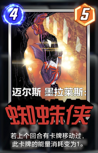 玩移动卡组的玩家,缺卡的时候可以带一张迈尔斯蜘蛛侠,稳定1能量5战力。