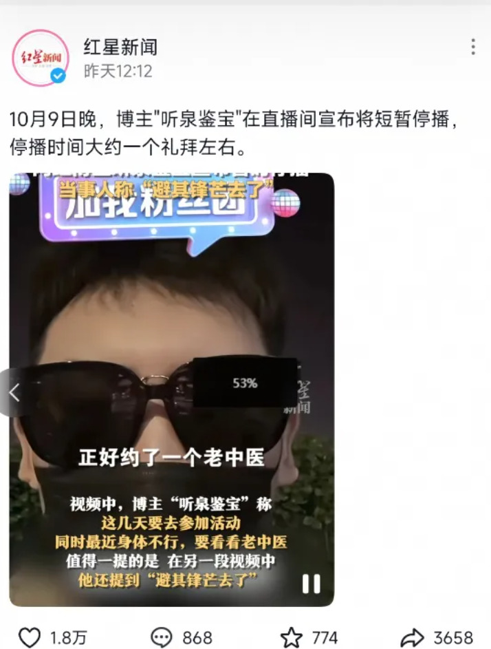 但是就是这样被网友们当做电子榨菜,发展前景极好的主播,却在前几天宣布要停播一段时间,估计停播一周左右,因为要去参加活动顺便去看老中医,并且在另一段视频表示“避其锋芒去了”。