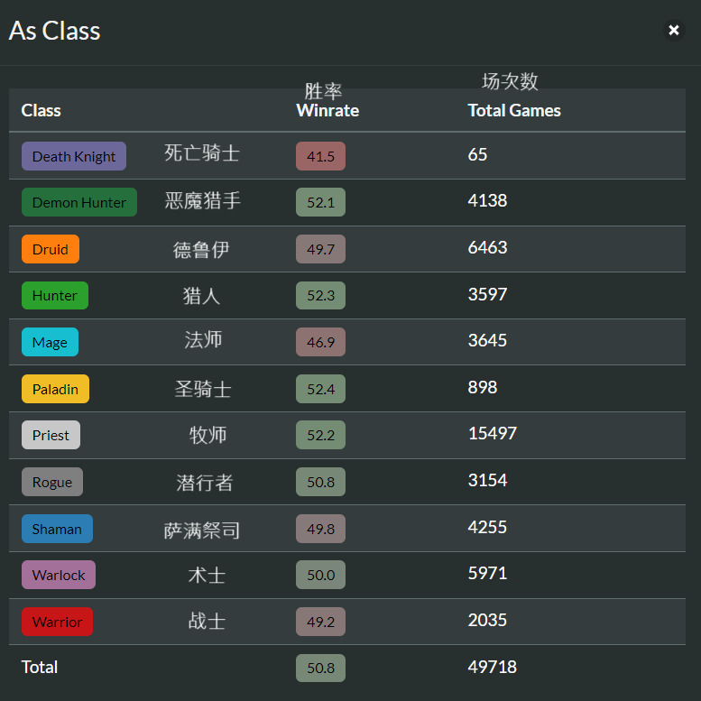 驴子网 传说前1000分段 101场56.4%胜率 (由于月榜没啥圣骑士的数据,所以放这套