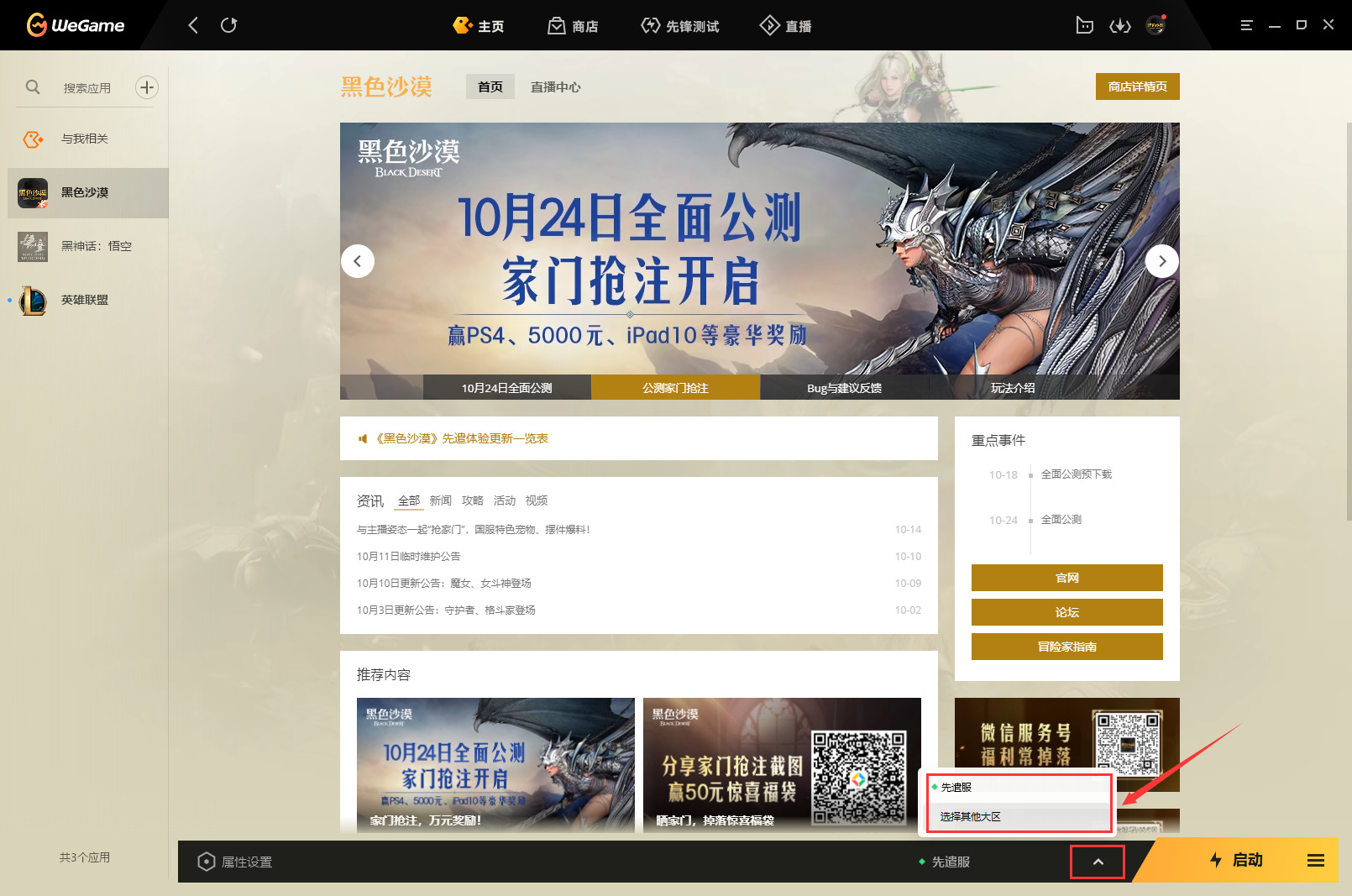 所有冒险家在2024年10月22日07:00,可以登录WeGame前往《黑色沙漠》游戏专区,即可超前登录全面公测服务器!