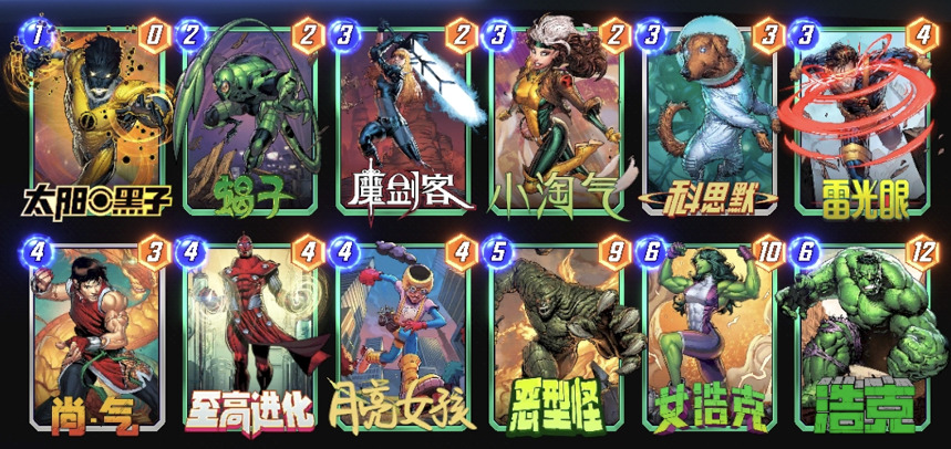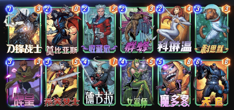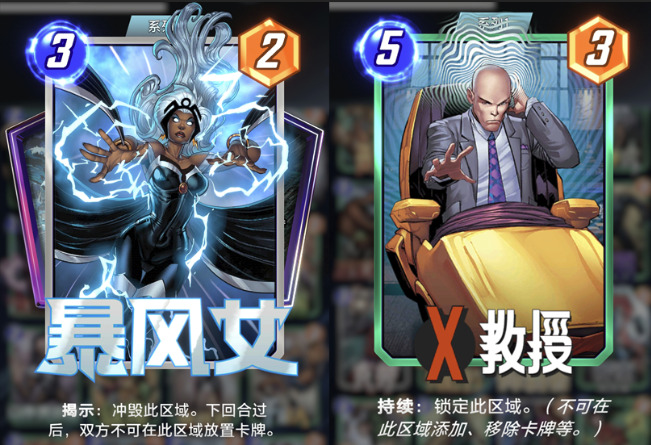 如果自己卡组没有可以补点的手段,不建议用暴风女,带暴风女的话就要确保有可以补点的手段,比如小鲨鱼、夜行者、奥创、毁灭博士、幻视等。同样如果卡组中没有小鲨鱼也不建议带X教授,真要带的话就带上夜魔侠打明牌吧,这个时候就需要1~4能量卡牌的战力非常扎实,否则就是多带了2张牌无用牌影响自己抽牌。