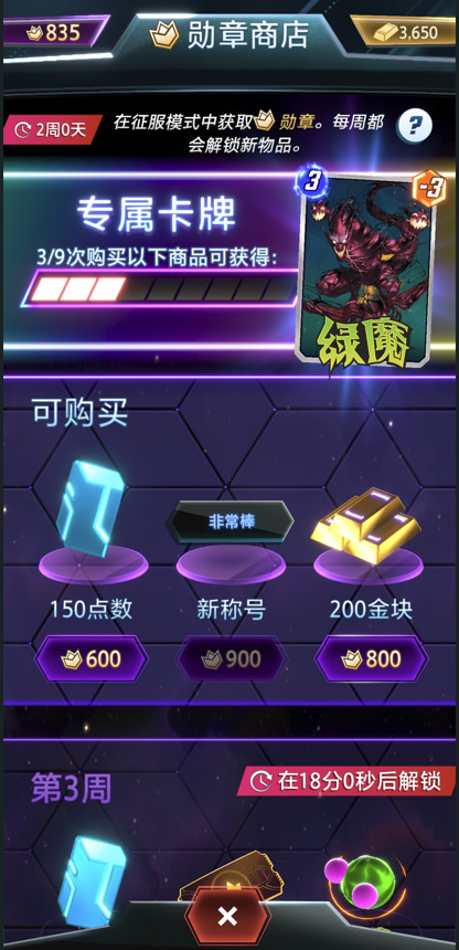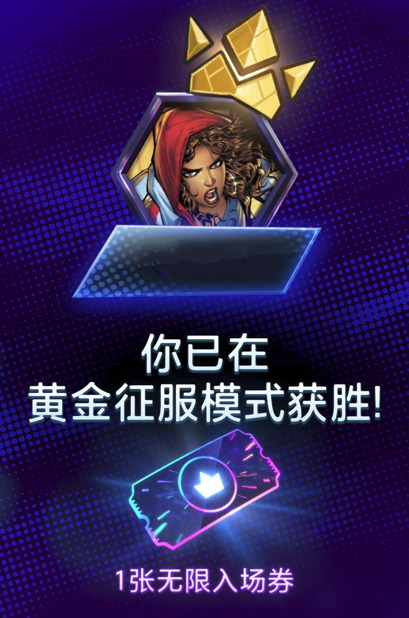 - 黄金征服模式,需要门票,胜利3场可以得到无限入场券和975枚勋章。