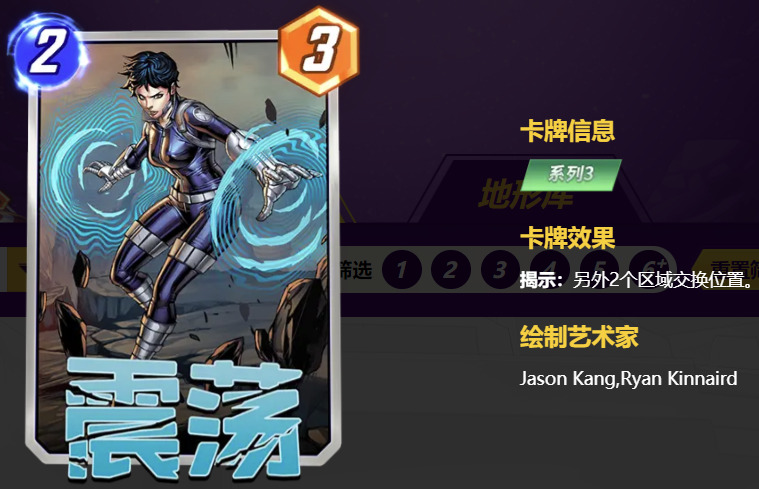 在地形方面,除了在天梯经常使用的猩红女巫,在征服模式,有时候震荡更好用,需要多一些思考和提前布局,对面就算知道你有震荡,也不知道你什么时候会调换哪2个区域,防不胜防。震荡经常可以在最后一回合配合尚气等,打出精彩的扭转战局操作。