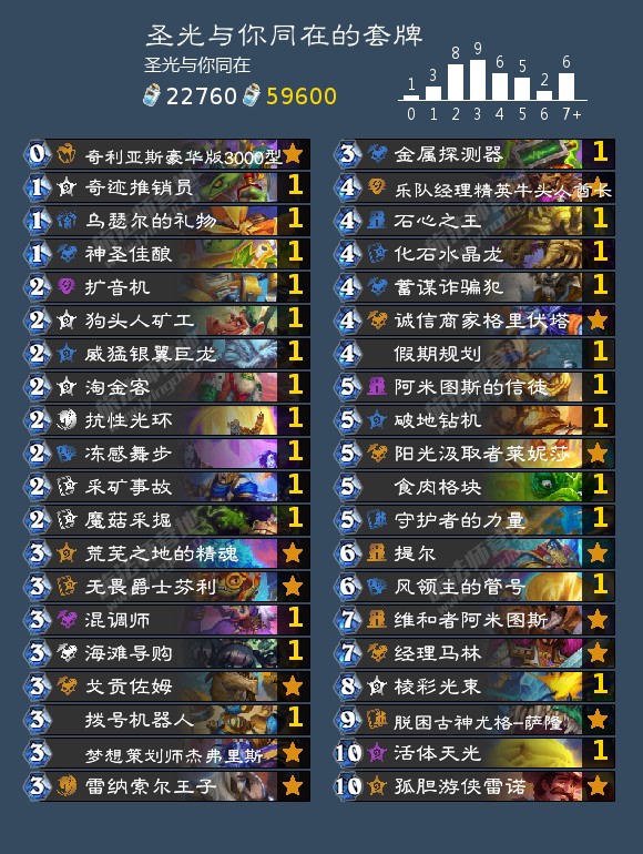 前天用这套自己研发的宇宙挖土骑上从钻四打到传说了(之前各种卡组都尝试过卡了很久),于是发了个帖子分享,这两天也持续在玩这套卡组并优化构筑,把抽牌龙和不许乱动换成了姐夫和礼物,连胜了一波从5.5w打到2.5w了!一把法师都没遇到,等补丁上线之后环境会更适合!打40土灵和德鲁伊都优势。本人圣骑士专精玩家,理解有限,欢迎各位大佬讨论及优化。如果大伙对卡组具体打法感兴趣请积极反响,想要尝试的人多的话我后续会写一篇详细玩法以及心得。