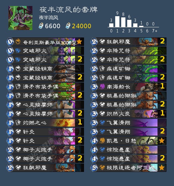 通过上面两个例子,大家是不是有了朦胧的一层感受,海盗瞎的很多卡其实并不是必须携带的,也并不是要抄谁的套牌才能够连胜。