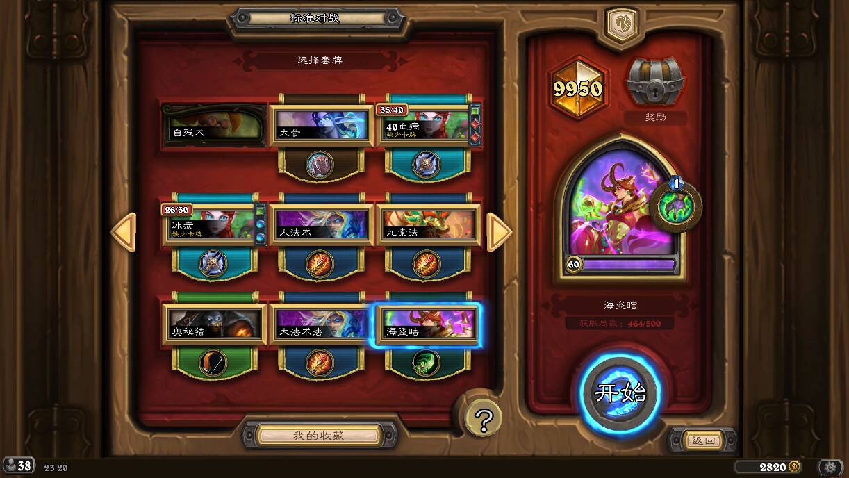 于是,我在卡组中去掉了南海船长,换上了火炭来对决茫茫多的DK,这里换南海主要是为了法力曲线不变,但是实际上以现在的目光来看,换掉火炮手更为合适。