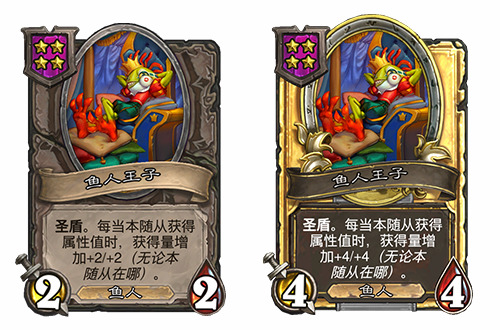 - 新:[2/2] 圣盾。每当本随从获得属性值时,获得量增加+2/+2(无论本随从在哪)。
