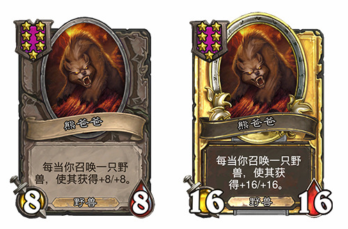 - 旧:[0/4] 战斗开始时:在本场战斗的剩余时间内,你的野兽拥有+2攻击力。