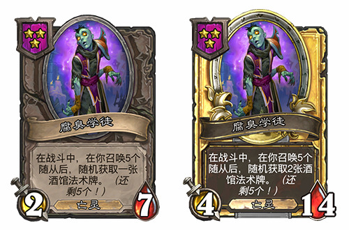 - 新:[2/7] 在战斗中,在你召唤5个随从后,随机获取一张酒馆法术牌。