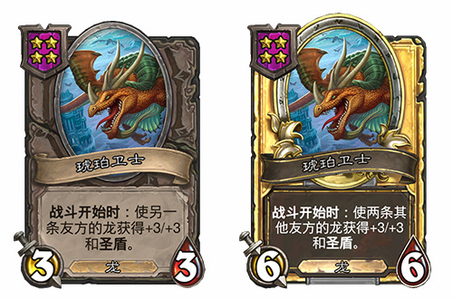 - 新:[3/3] 战斗开始时:使另一条友方的龙获得+3/+3和圣盾。