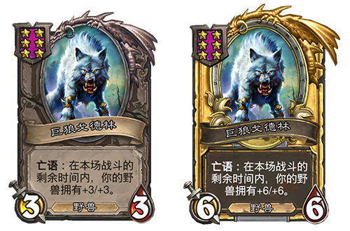 - 新:[3/3] 亡语:在本场战斗的剩余时间内,你的野兽拥有+3/+3。(回调)