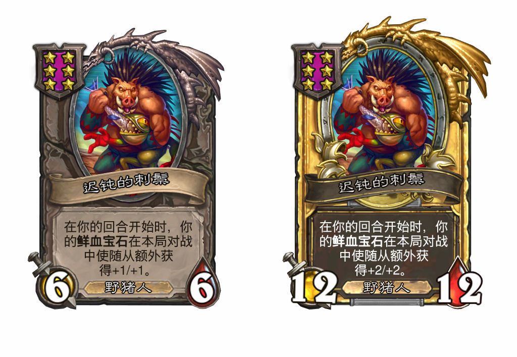 - 新:[2费] 复仇(4):在本局对战中,你的鲜血宝石使随从额外获得+1/+1。