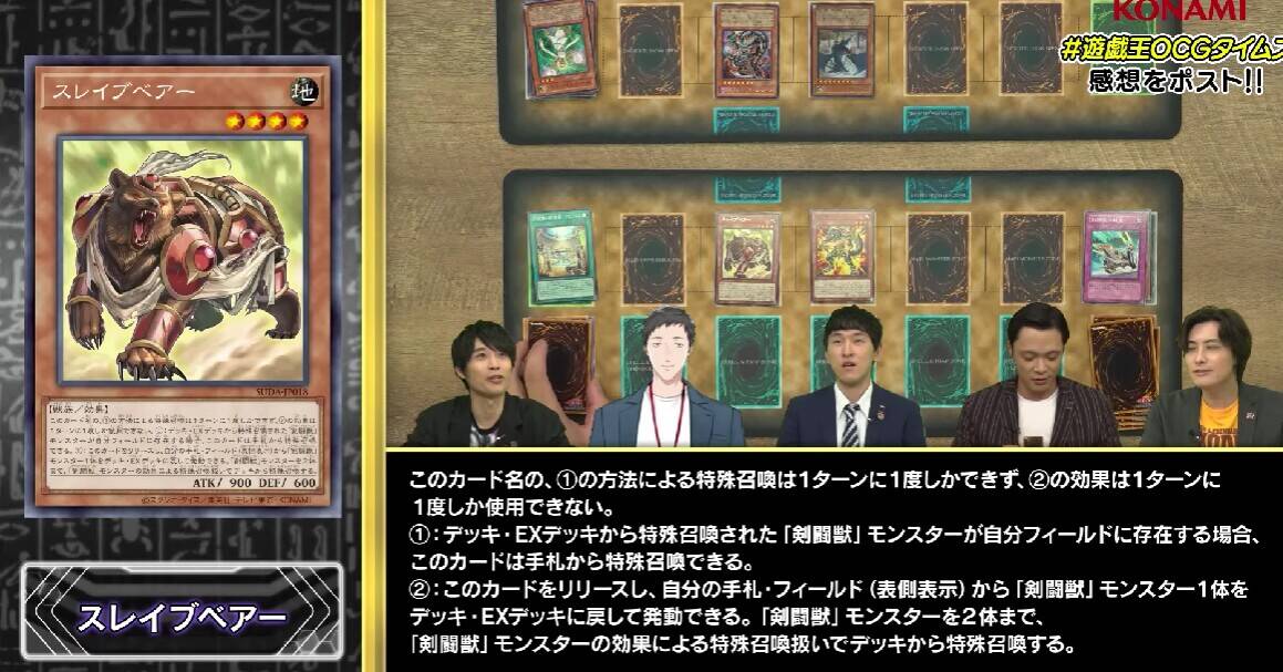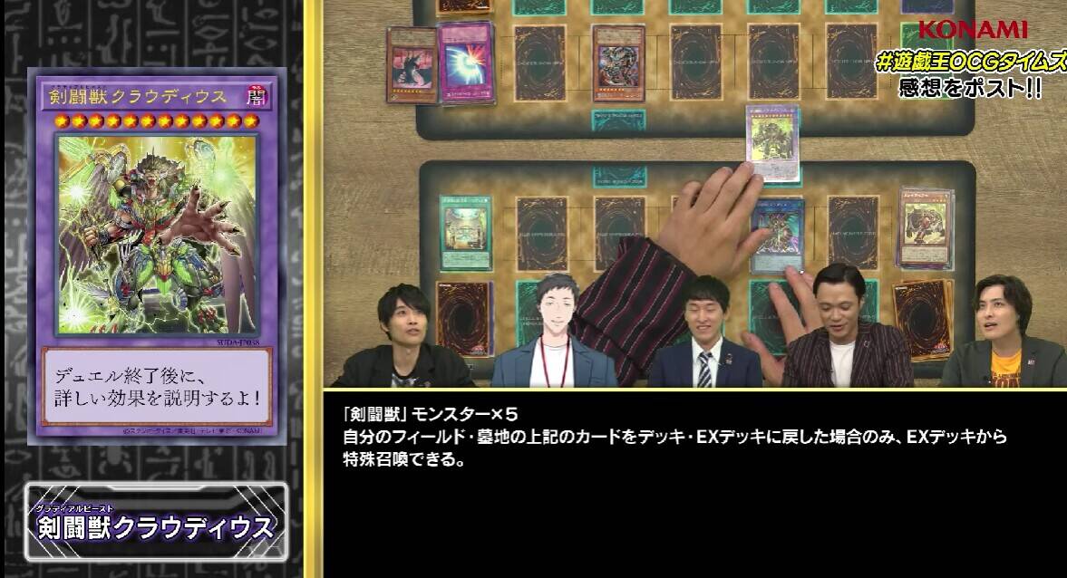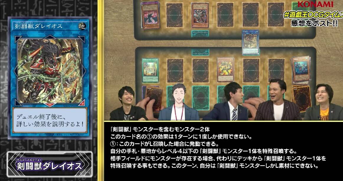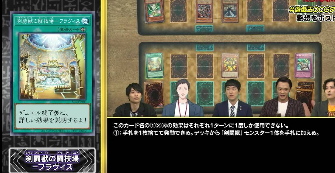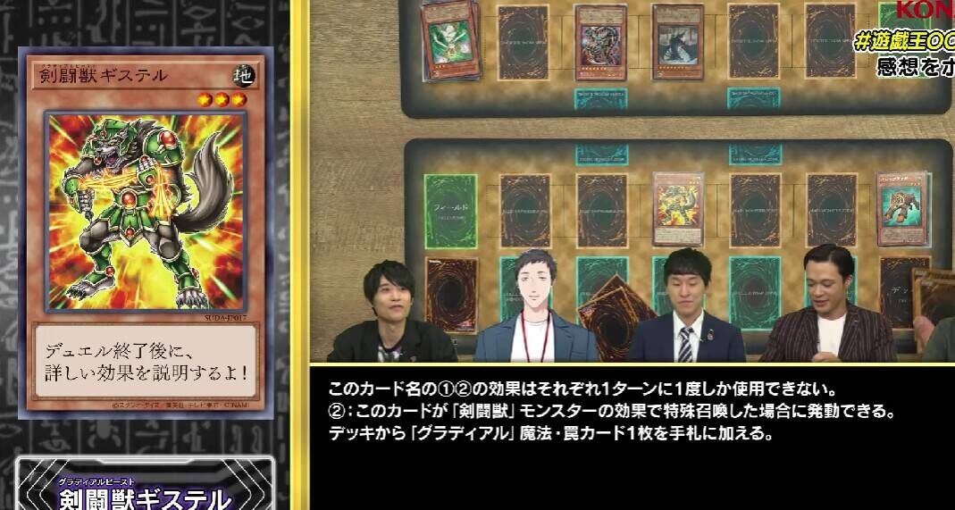①:将手牌的这张卡和手牌的1只「剑斗兽」怪兽给对手观看才能发动。那2只特殊召唤。