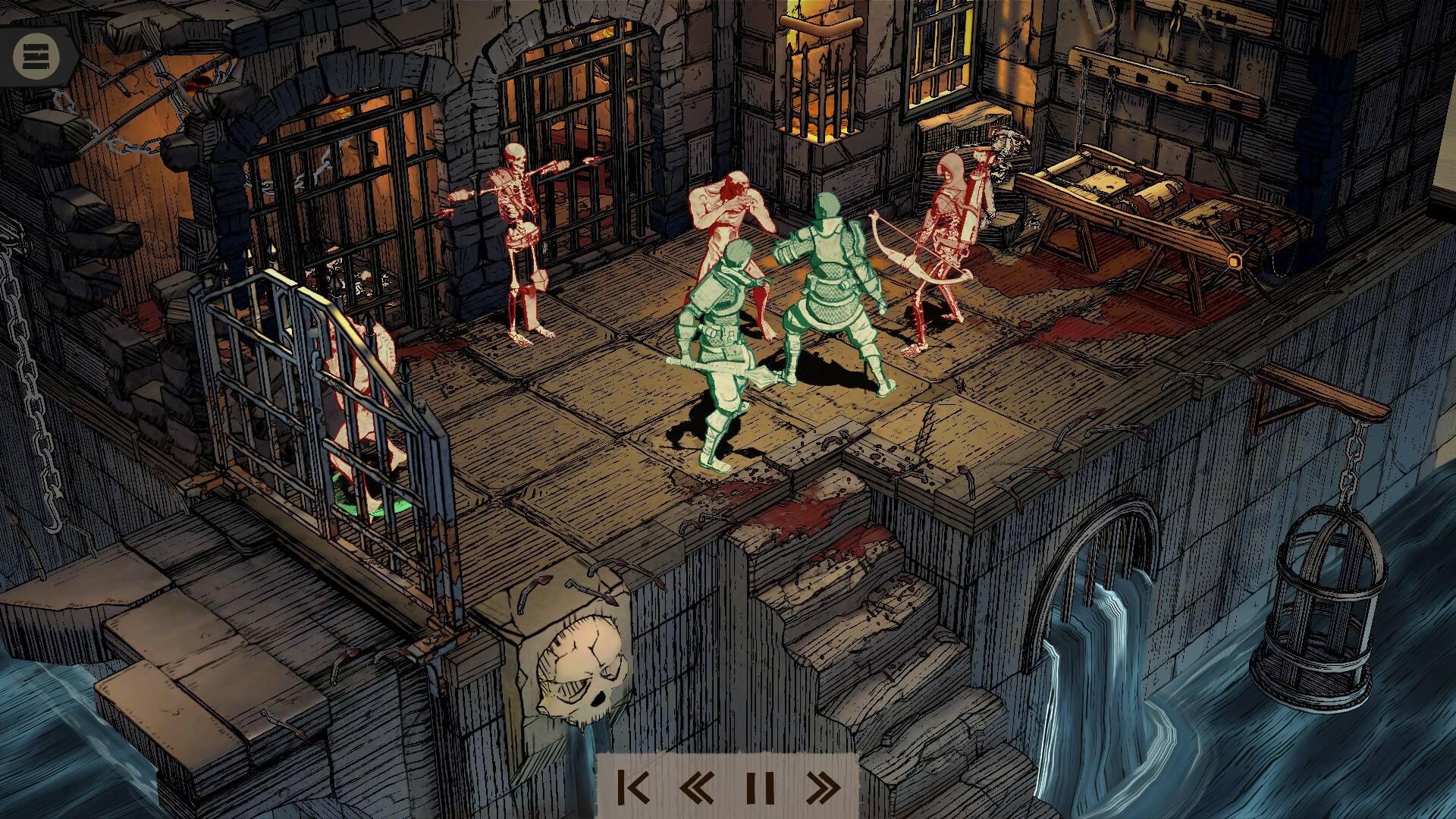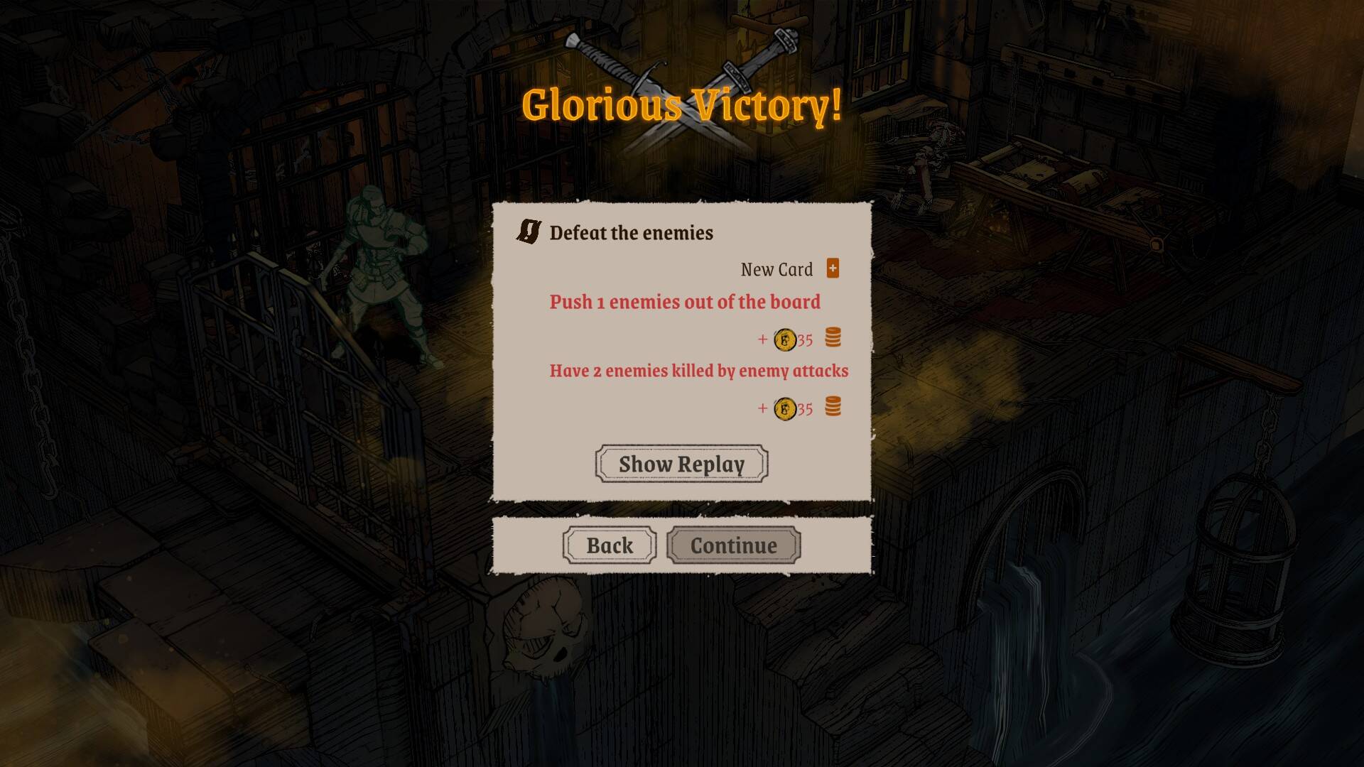 游戏中,玩家控制的小队需要被设置一个队长角色,队长的败亡会直接导致小关游戏的结束。在较低的难度下,玩家可以选择关卡重来,同时也拥有一定的“悔棋”次数,可以撤销自己已经执行的操作。敌人拥有的基本行动需要通过点击角色唤醒状态栏位进行观察,而不是如同如今大部分的卡牌游戏一样直接显示在脑袋上,这使得在一般战斗中,简洁的界面配合无数值UI的场景很有械斗战场的风味;少数特效动作卡牌引入了特写动作用以放大美术对于策略的表现力,整体构成了游戏的风味特色。
